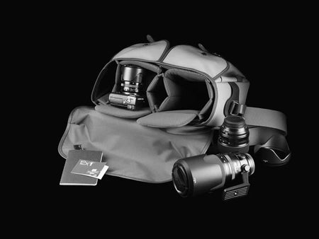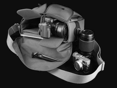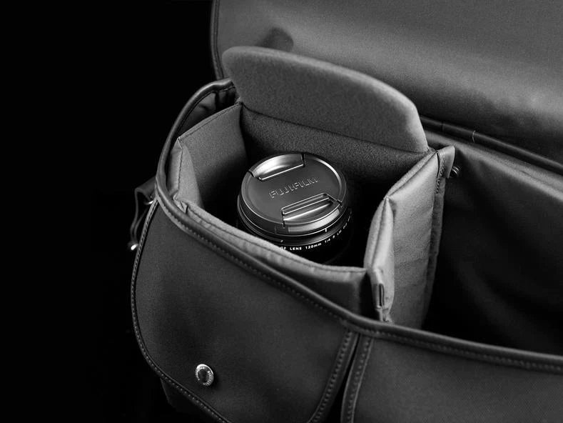 The included Half Size Insert will allow you to carry a small-to-medium camera with lens attached (and maybe another spare lens stacked underneath). It can be fixed in on the left, right or centre of the bag.