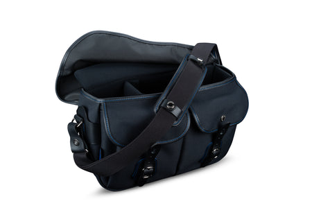 Billingham's Hadley Pro 2020 Midnight Edition comes with a matching SP15 Shoulder Pad featuring the same Blue Stitching as the bag. The Midnight Edition features Billingham's waterproof Black FIbreNyte material with stylish blue stitching and subtle hints of blue leather. Billingham's Black FibreNyte material is backed with a black lining fabric with the inserts and dividers to match