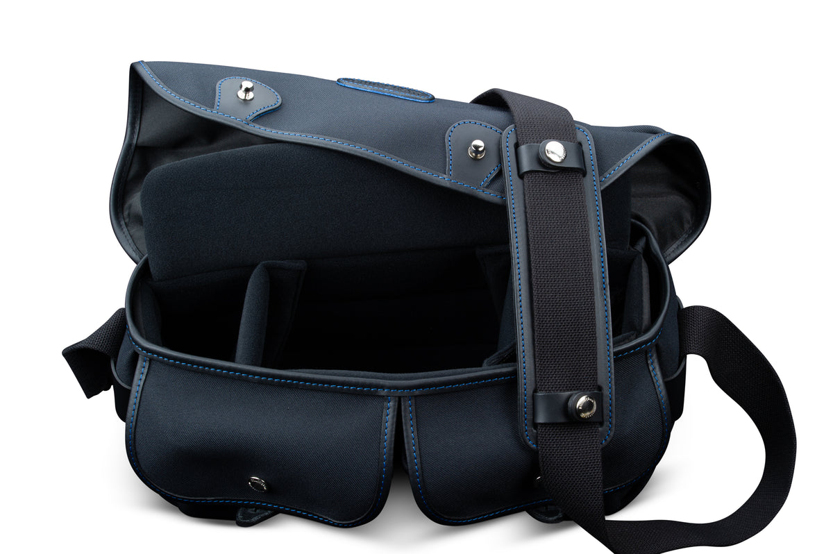 Billingham's Hadley Pro Midnight Edition comes with a matching SP15 Shoulder Pad featuring the same Blue Stitching as the bag. The Midnight Edition features Billingham's waterproof Black FIbreNyte material with stylish blue stitching and subtle hints of blue leather. Billingham's Black FibreNyte material is backed with a black lining fabric with the inserts and dividers to match