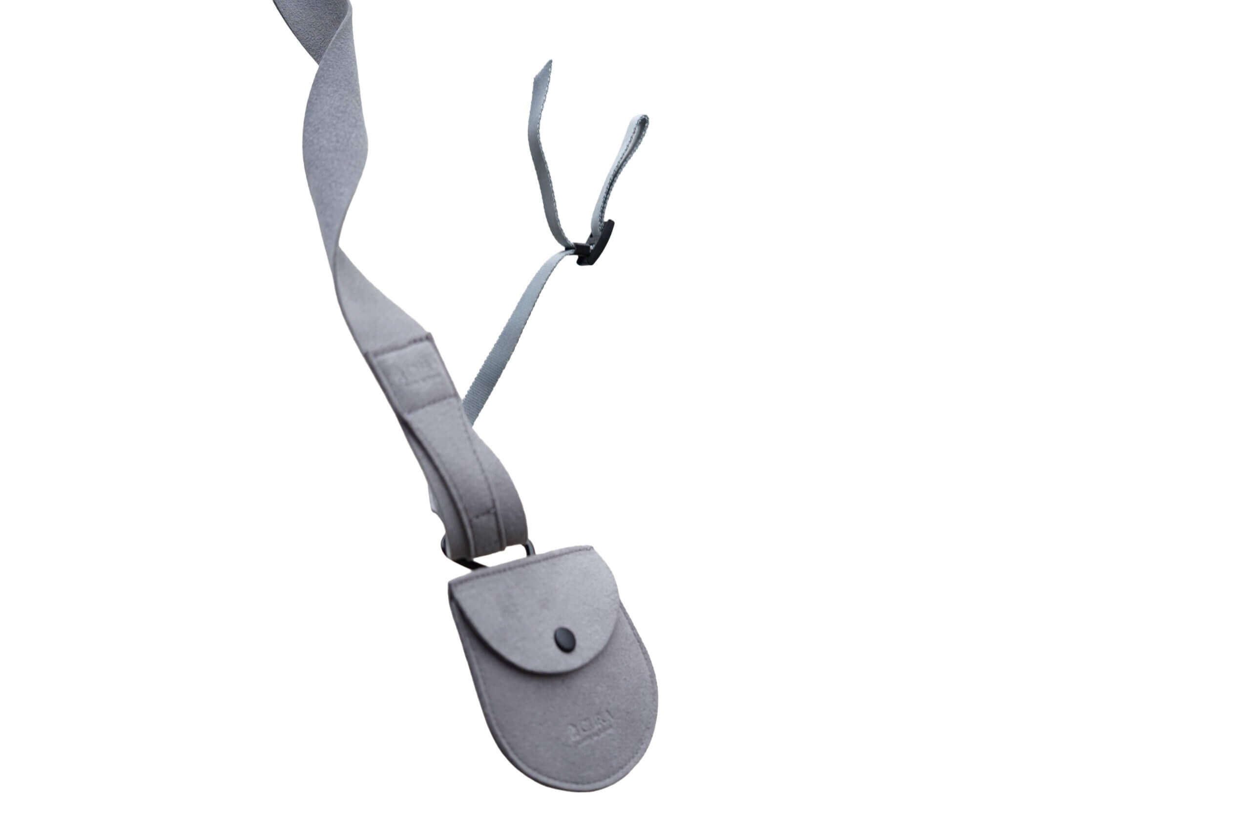 AirStrap, which is as light as air and has a new texture that is different from previous straps, has no seams in the part that touches the skin, combining a gentle feel and a supple ease of handling. The 30mm wide strap body reduces the burden even when heavy equipment is put on the neck and shoulders.
