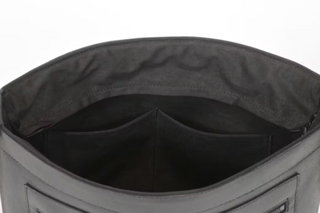 MilliCloth: The hinged lid is combined with MilliCloth, a super-high-density woven Ventile-type material. This material has high water-repellent properties, preventing water from entering from the opening and bottom.
