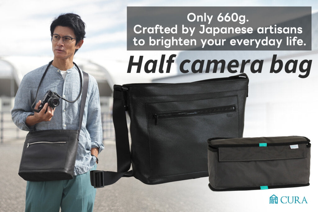 Introducing the “Half Camera Bag,” a new category designed for the “perfect relationship between the camera and myself,” where each space is split roughly in half. The inner box, named “Cura Box,” occupies about half of the total capacity. It features internal flaps to smartly partition two cameras, or one camera with lenses and other peripherals. Despite its unbelievable lightness, its protection capability secures your precious gear.