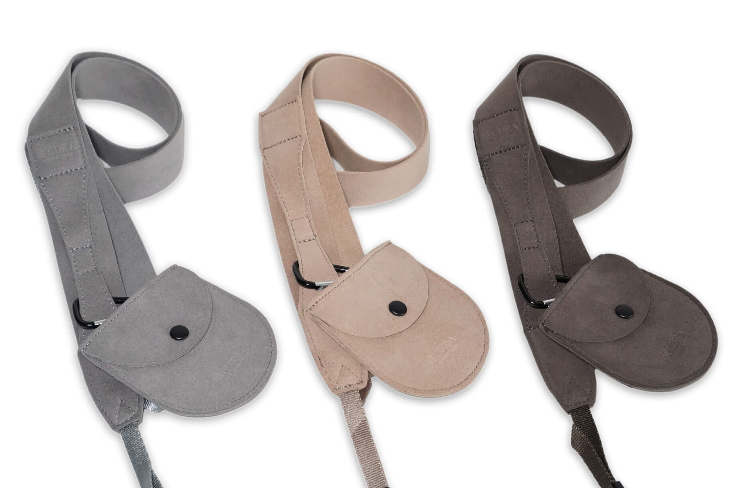 AirStrap, which is as light as air and has a new texture that is different from previous straps, has no seams in the part that touches the skin, combining a gentle feel and a supple ease of handling. The 30mm wide strap body reduces the burden even when heavy equipment is put on the neck and shoulders.