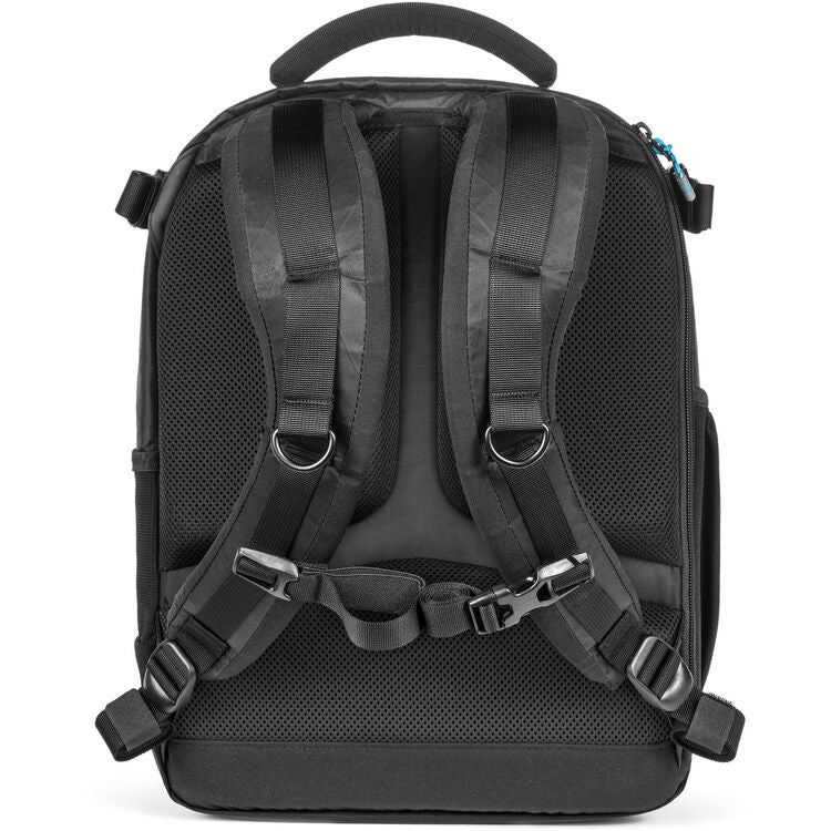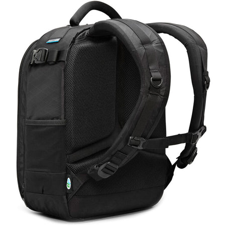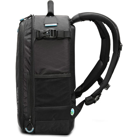 Carry options include a built-in top handle and padded, adjustable shoulder straps. The resilient and breathable 3D mesh padding along the rear exterior cushions your back and shoulders. The padding features an elevated structure to optimize air circulation, minimizing perspiration in warm and hot environments. For heavy loads, use the adjustable sternum strap to evenly distribute the weight. The pack features a compartment for a 14" laptop or tablet and two large, stretch side pockets with compression straps for water bottles, a tripod, a monopod, or a trekking pole.