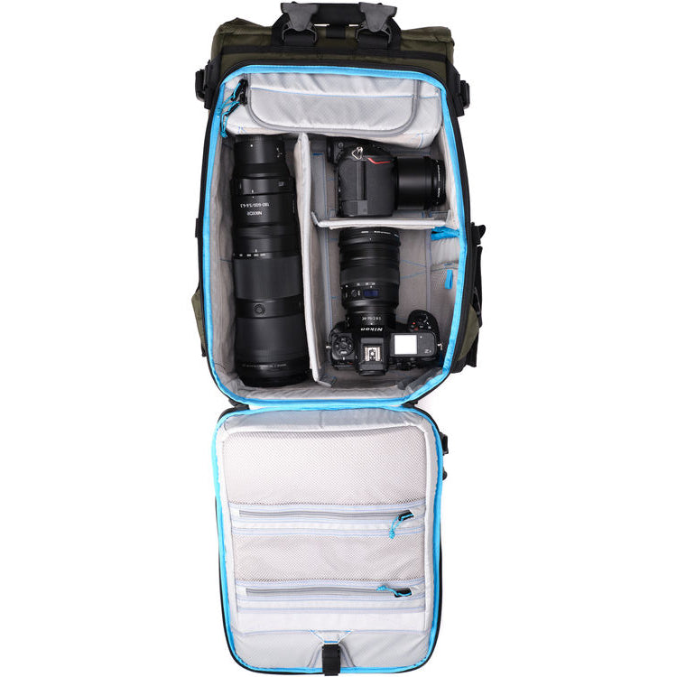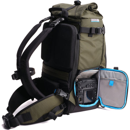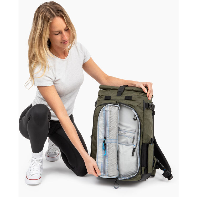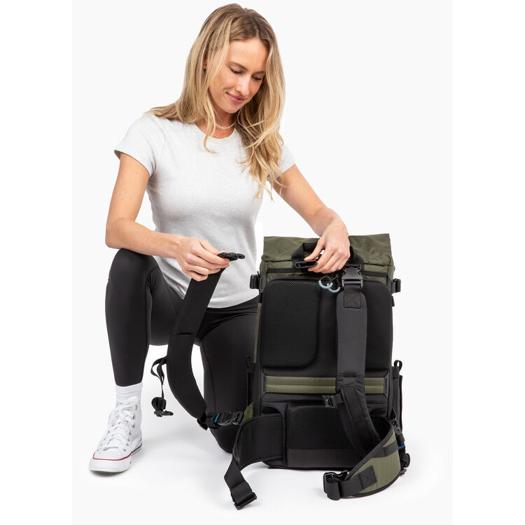ROLL-TOP STORAGE: An expandable roll-top adds up to 5L of extra capacity for daily essentials or travel gear. Secured with Fidlock™ magnetic buckle, it’s built to hold a jacket, drone, or water bottle — everything you need beyond your camera setup.