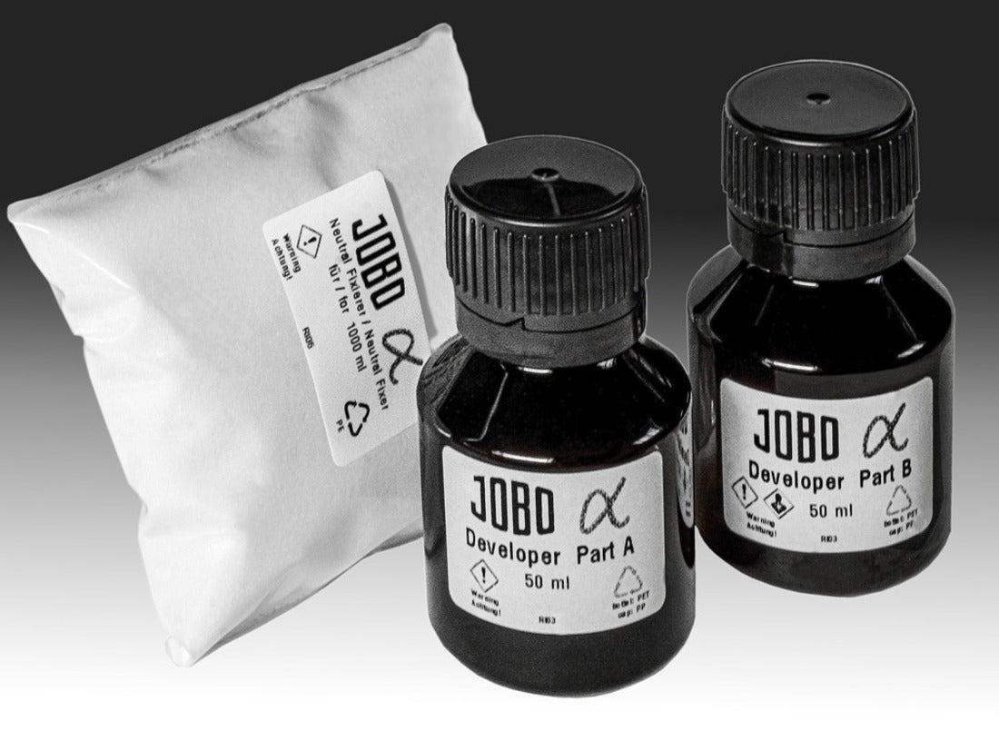 The JOBO Alpha is a universal black & white developer that allows full utilisation of the film speed and still excels in fine grain and great sharpness. Uniquely suited for rotary processing, it is nonetheless an excellent all-rounder for all types of developing techniques. This kit includes two bottles of 300ml of concentrate, to make a total of 1 litres of working, which can yield approximately 8 rolls of film.