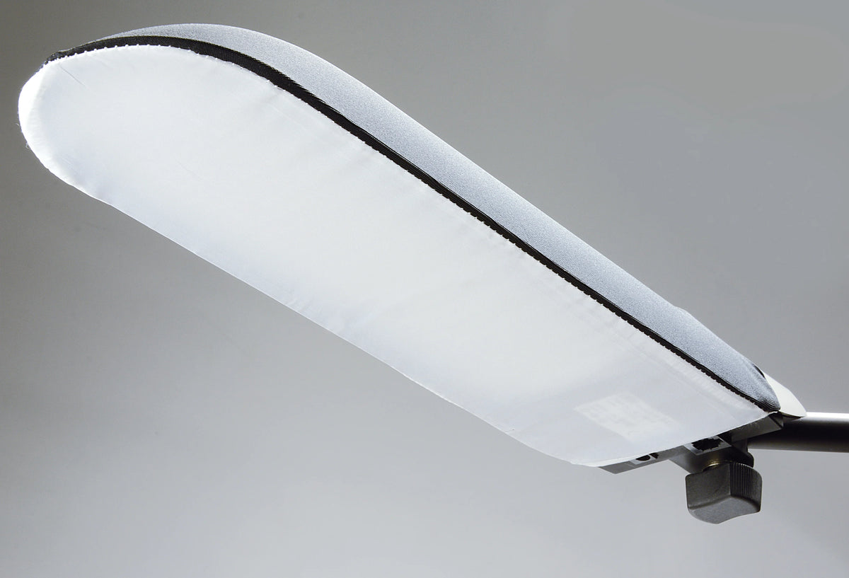 LED daylight lighting unit with two light banks for even and soft illumination. Emitted light has absolutely no IR and UV content. DC operation provides for flicker free light without residual ripple. Each light equipped with 161 selected white SMD LEDs. Lights can be dimmed separately or in conjunction. Incl. removable diffusing cover (5466).