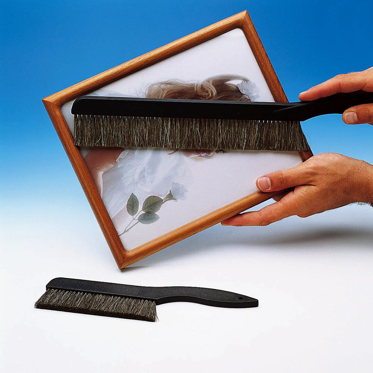 Kinetronics Static Wisk Cleaning brush is particularly suitable for cleaning sensitive surfaces and at the same time removing any existing static charge. The smaller brushes are ideal for removing dust from films or objectives without any danger to the coating. The bigger brushes are used for removing dust and lint from larger surfaces, such as the glass on picture frames, scanner glass, monitors, acrylic surfaces or plastic surfaces.